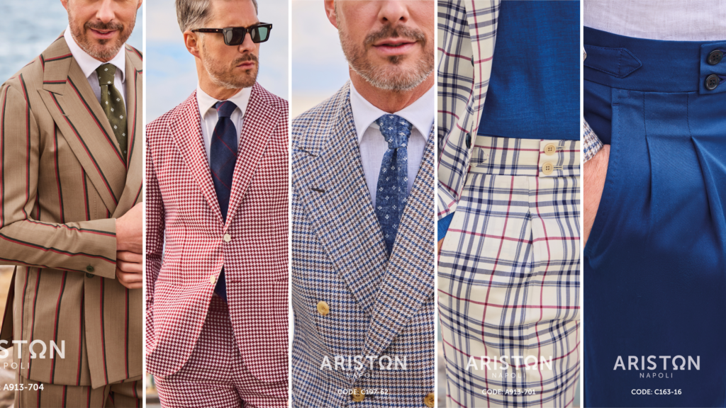 The season’s look book and other favorite lifestyle fabrics can be found in the “big” Life & Style book. New this season is The Lux collection which is a rich cashmere and silk fabric suits collection. And the Shirts Research collection features a wider variety of stretch and casual shirt options. Spring/Summer 2026 Collection. To make sure of availability, please consult the current Ariston “out lists” here.